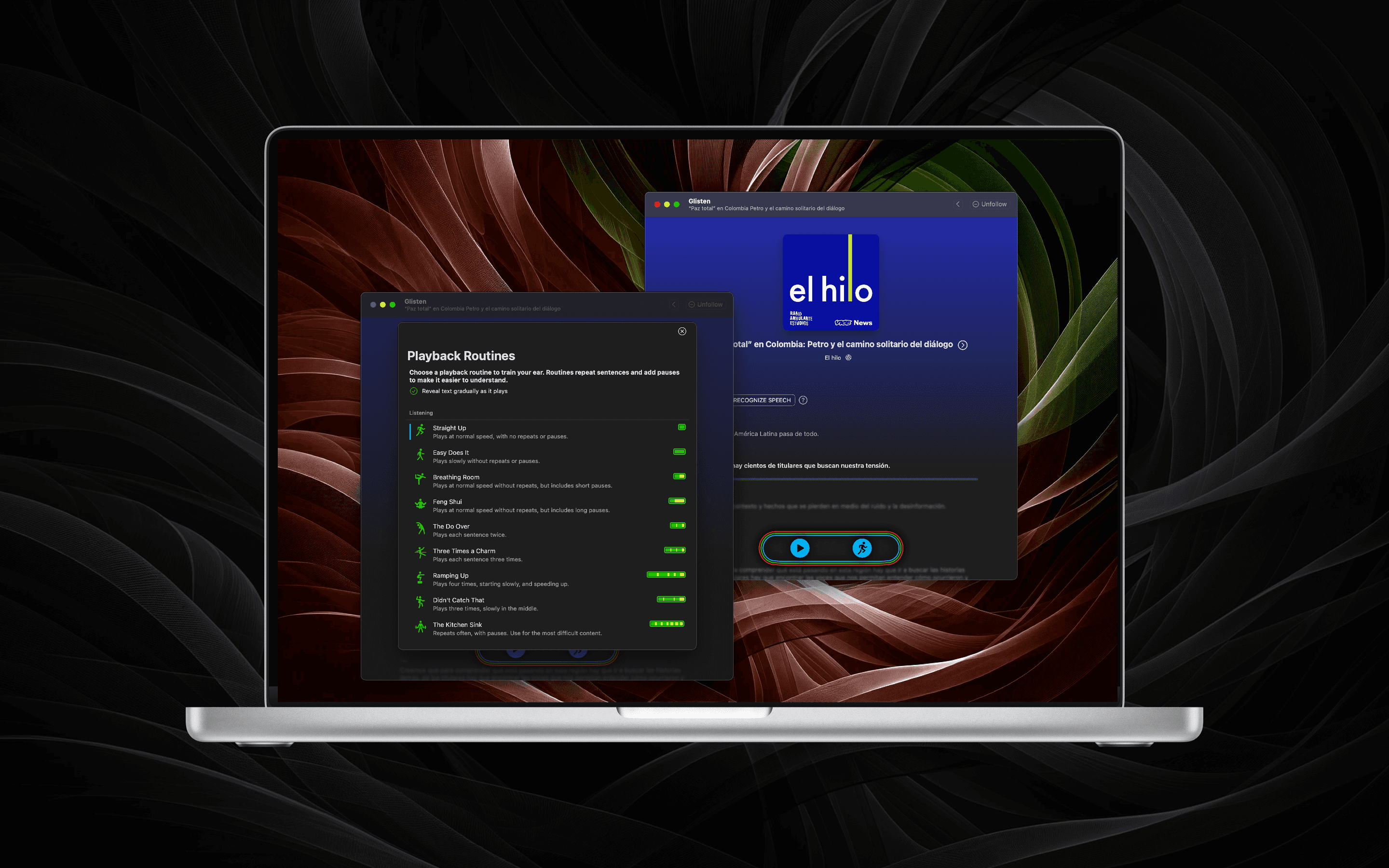 I teach/learn Spanish through hosting the Medical Spanish Podcast, and I just tried this application out, and I love it … It’s an awesome way to immerse yourself in Spanish, and be able to repeat things and see the transcript when needed … Love it! Bravo!